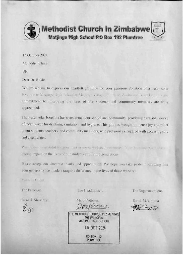 We are twinned with the Methodist Circuit in Matjinge, Zimbabwe, where Rev Dr Richman Ncube was educated.